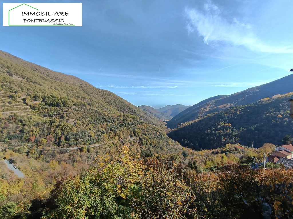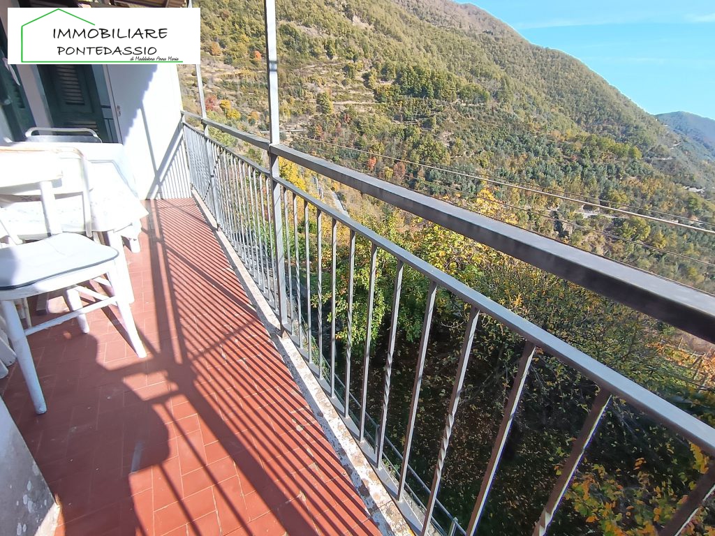Piano Primo: Raggiungibile tramite comoda scala esterna di proprietà. L’ingresso si apre su una luminosa zona giorno con angolo cottura separato, un pratico bagnetto e un balcone con splendida vista sulla vallata e sul suggestivo castello che domina Rezzo.